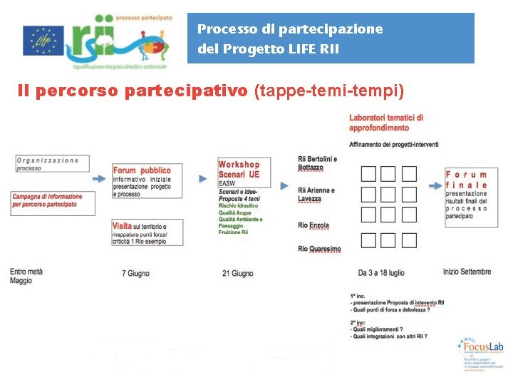 Prosegue infatti il Percorso di Partecipazione a supporto del Progetto LIFE RII (dopo il Forum iniziale del 7 giugno), i cui obiettivi sono: informare, consultare, confrontare, migliorare scelte e interventi, secondo modalità organizzate che prevedono una serie di tappe (vedere Schema percorso partecipativo).